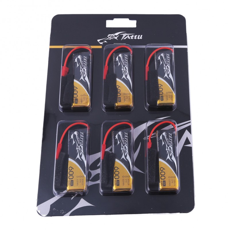 Pack de 6 Lipos 600mAh 30C 1S avec prise JST Tattu