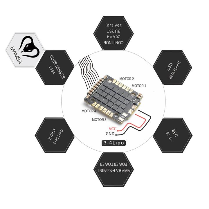 Contrôleur de vol: Fury F4 8K, MPU6000 6 axes; OSD; Mémoire flash 16M; BEC 5V 2A Capteur de courant