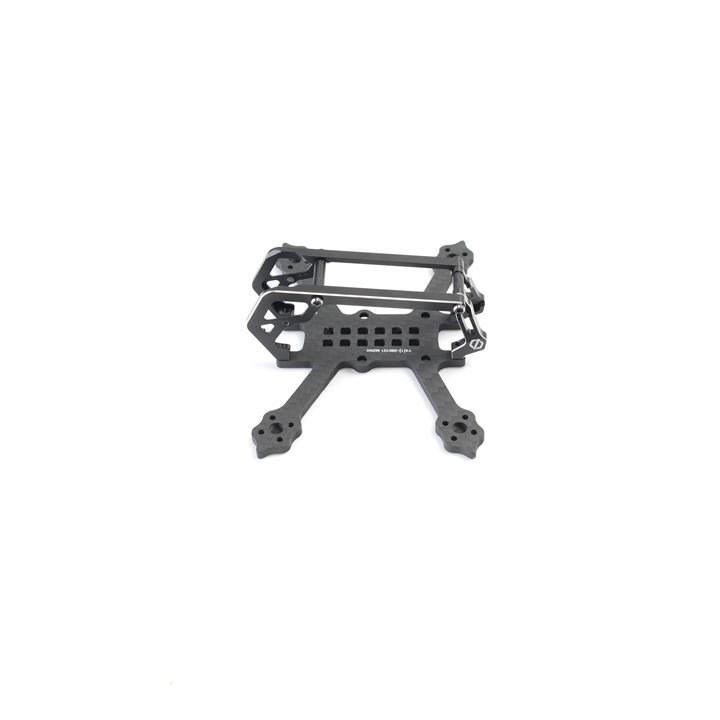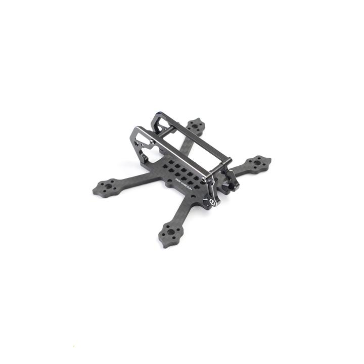 Un format mini, tout en gardant l'esprit et la fonctionnalité des chassis en 5"... Chassis en carbone 3K, cage en Aluminium de classe 6061, servant de support et de protection de caméra (toujours au format micro), et l'ouverture à 180° offrant un accés pratique à l'electronique!