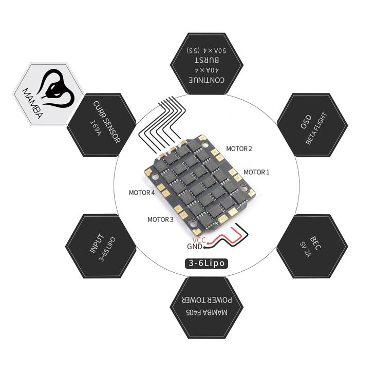 - Alimentation : 3~6S (12.6V~25V)